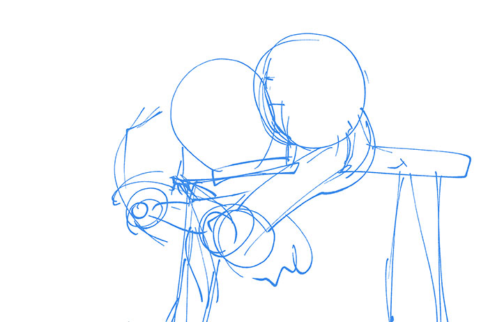 多分ミデアが、右にズレすぎていて、左の肩(もしくは腕)がめっちゃ長くなってしまってるのと、そもそもの話、この絵だとミデアは何にもない空間に体重を預けてるみたいになってる。