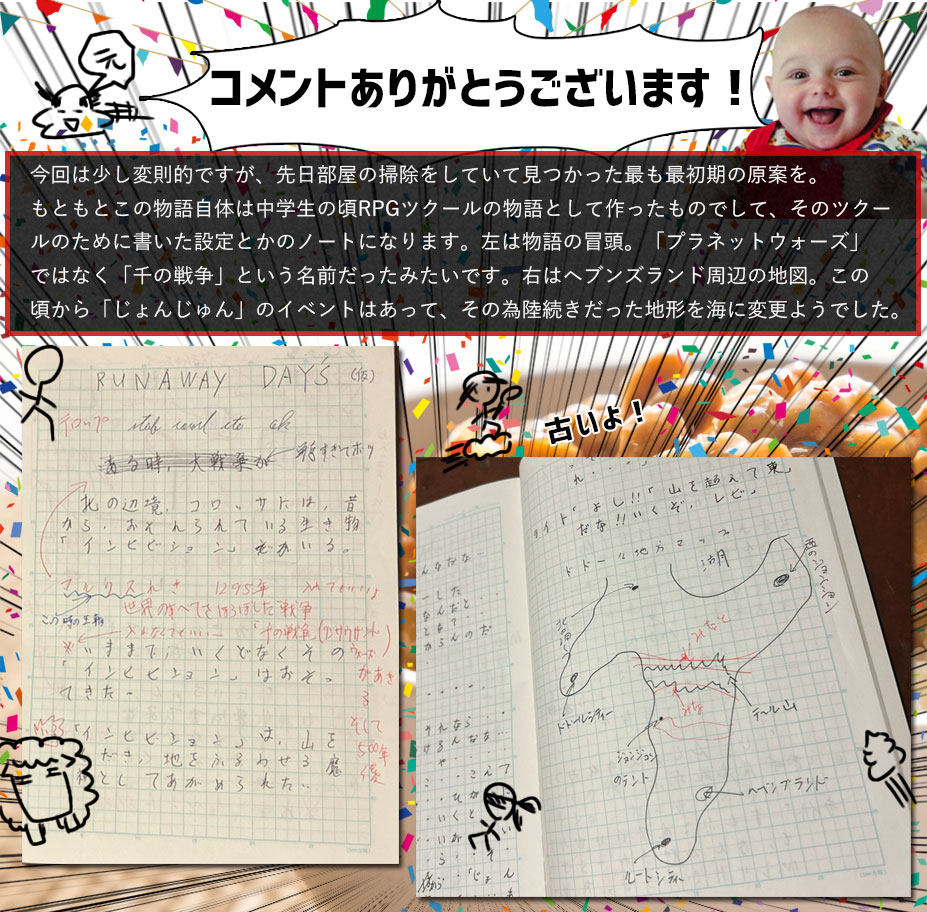 初期設定段階での「千の戦争」について、人口生命体の設定について、幽子理論についてなど、中学生のおつむがどんなことを考えていたか赤裸々に書いていきましょうじゃないですか。