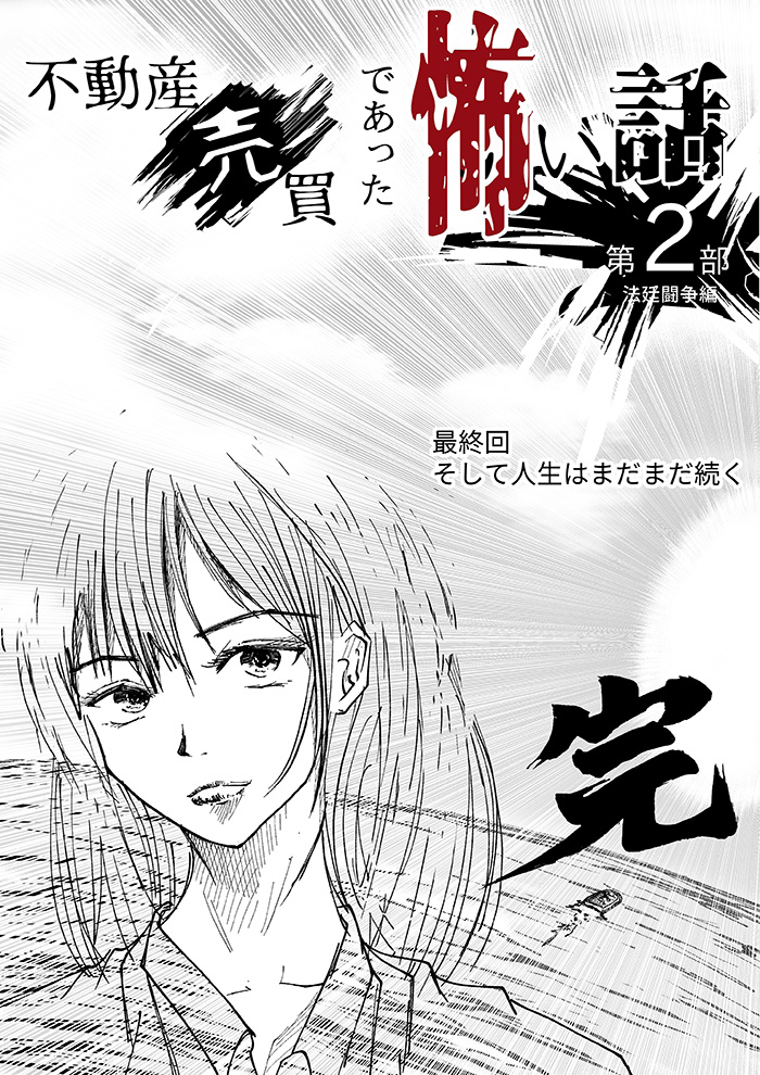「不動産売買であった怖い話」最終話の扉絵完成した。第1部の最後を「男坂」の打ち切り最終話の感じで描いたので、今回の最終話は「男坂」の本当の最終回の感じを見ながら描いたよ。